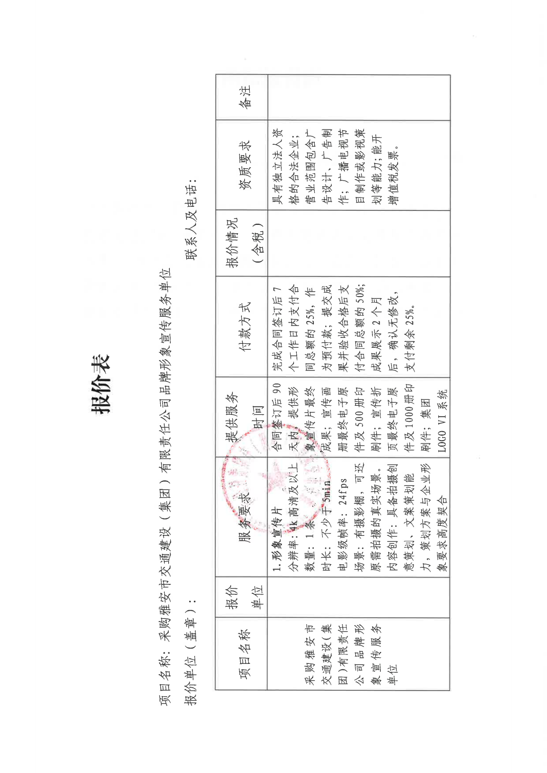 关于采购集团品牌形象宣传服务单位的询价函