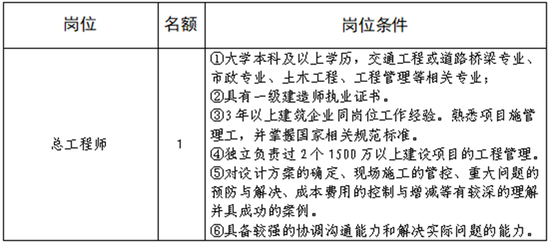 K8凯发建设集团路桥有限责任公司是雅安市交通建设(集团)有限责任公司下属子公司,主要从事道路、桥梁修建。现根据公司业务开展需要,拟向社会公开招聘总工程师1名,工作人员4名,现将有关事项公告如下: