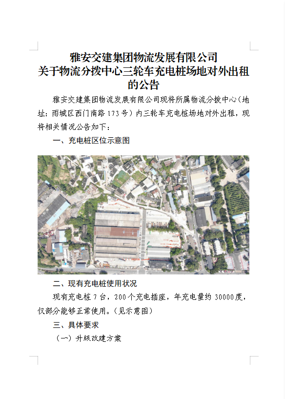 K8凯发建设集团物流开展有限公司关于物流分拨中心三轮车充电桩场地对外出租的公告