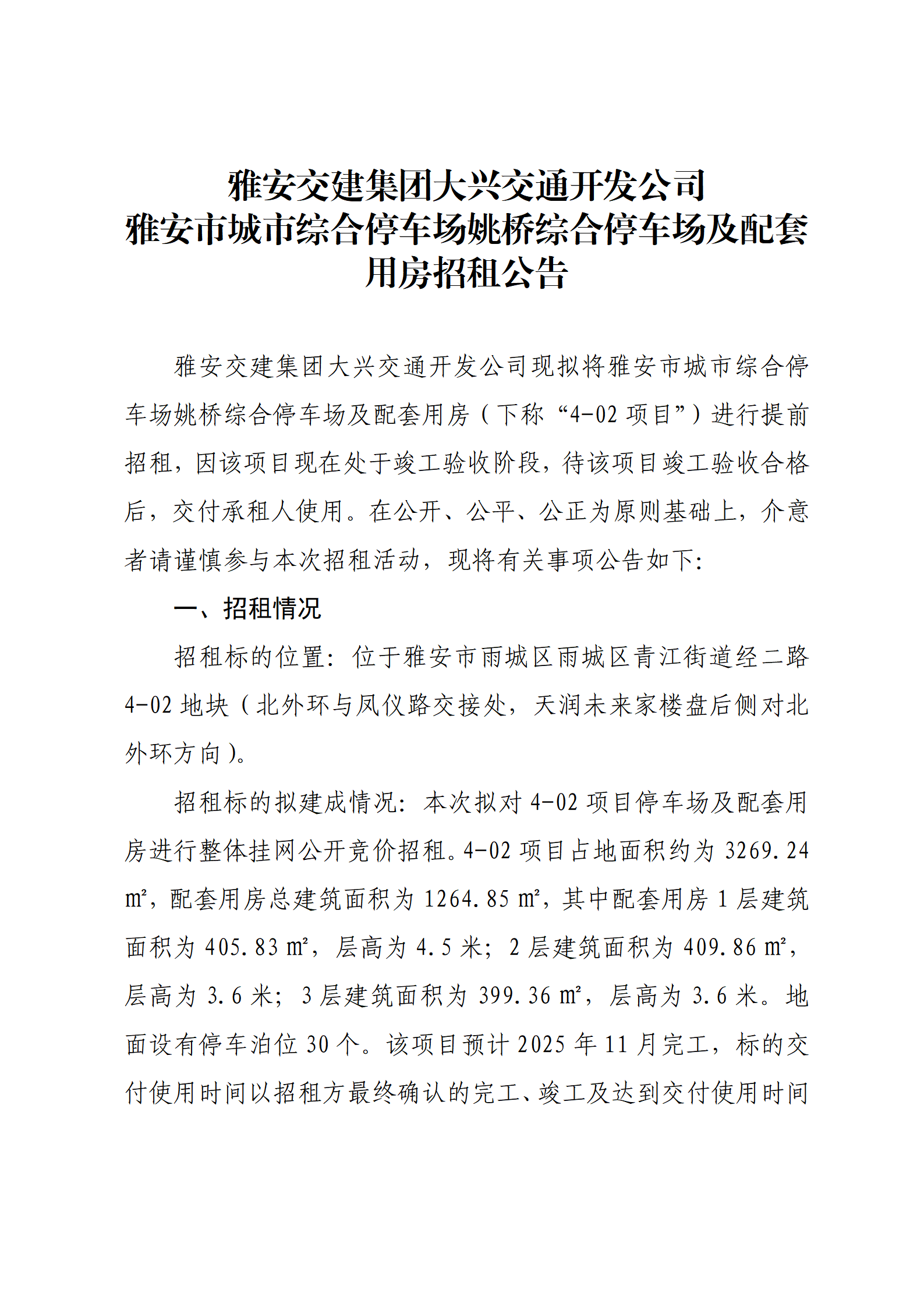 K8凯发建设集团大兴交通开发公司 雅安市城市综合停车场姚桥综合停车场及配套用房招租公告