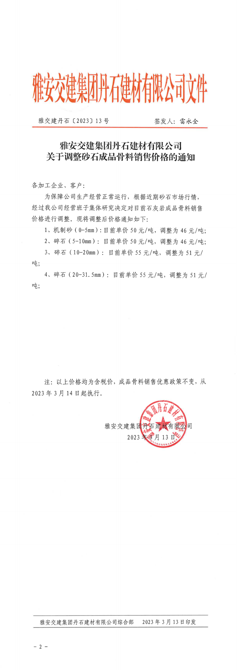 K8凯发建设集团兴宝投资有限公司关于调整成品料价格的通知(2023.03.13)